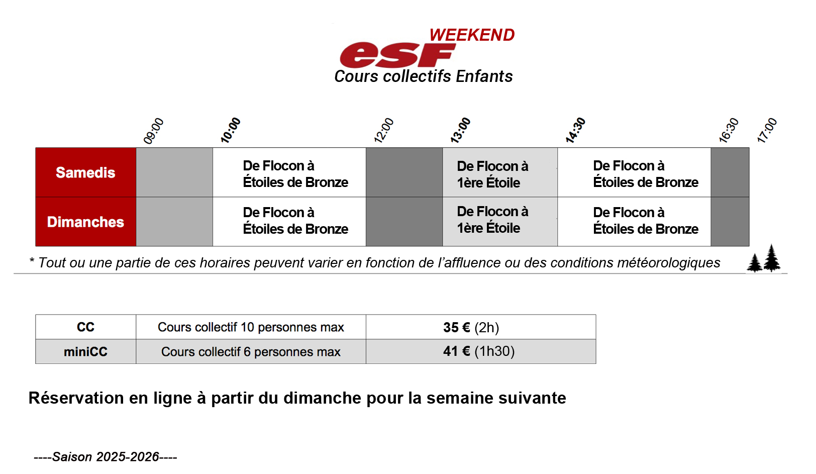 SKI ALPIN WEEKEND - COURS COLLECTIF ENFANT - COURS PRIVÉS ENFANT / ADO / ADULTE